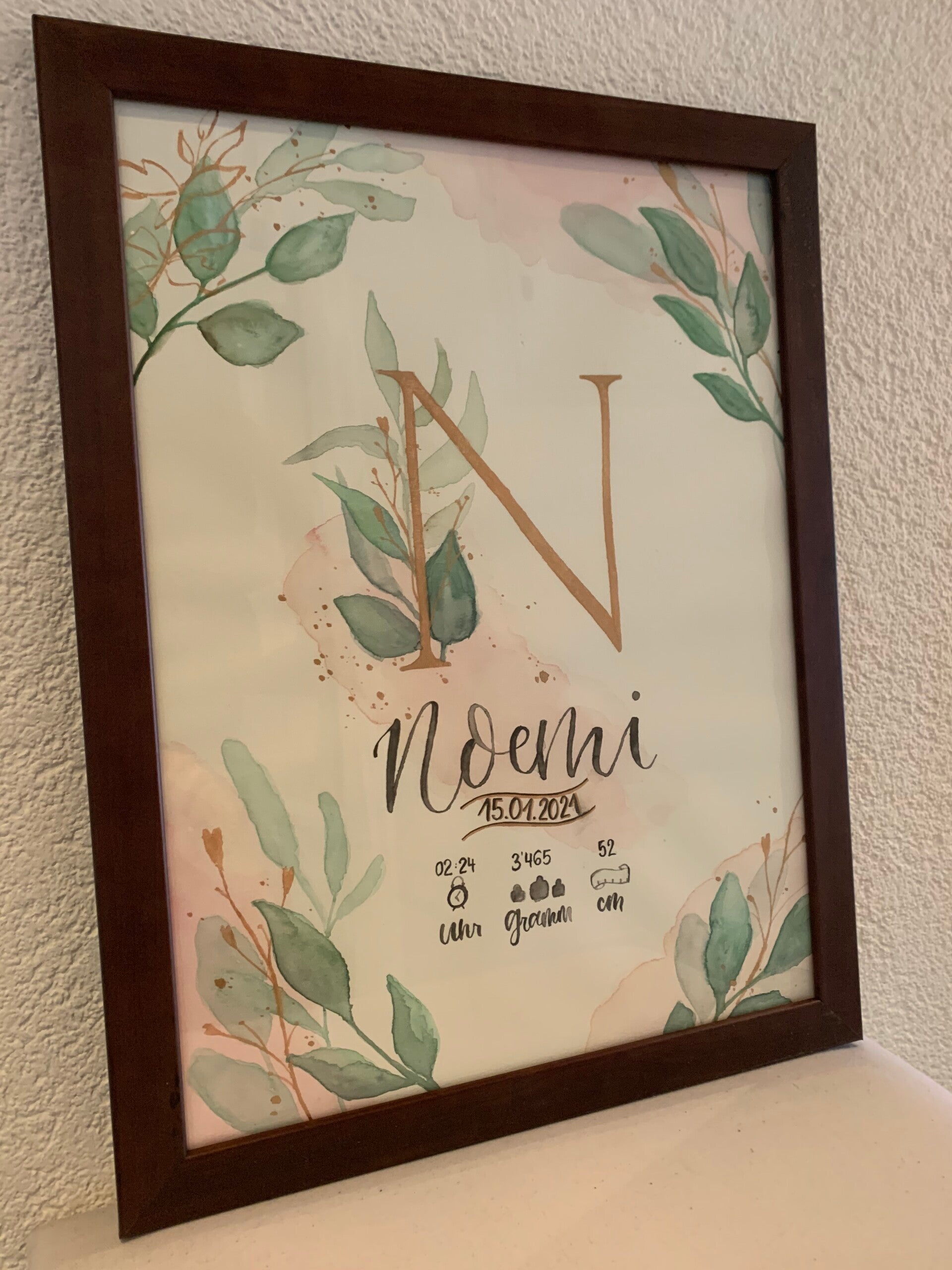 E einzigartegi Gschänksidee zure Geburt, Toufi oder süsch ame Ahlass. Das Biud wird mit viu Liebi u Härzbluet vo Hang houptsächlech mit Wasserfarbe ersteut u auefaus mau mitemne Fineliner Stift Konture nachezeichnet. Somit isch u blibt jedes Biud es Unikat.