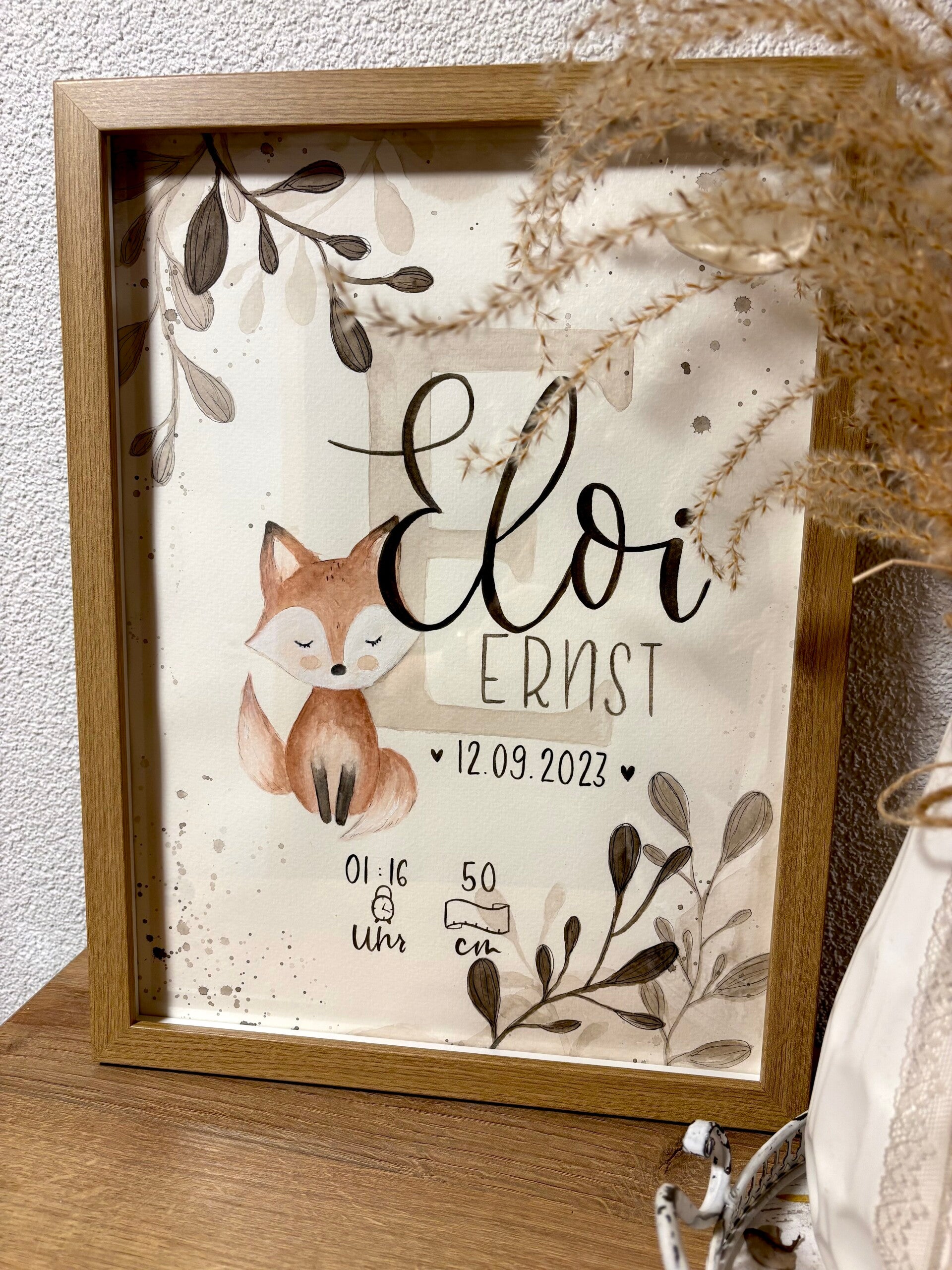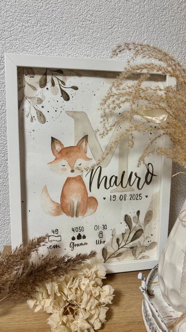 E einzigartegi Gschänksidee zure Geburt, Toufi oder süsch ame Ahlass. Das Biud wird mit viu Liebi u Härzbluet vo Hang houptsächlech mit Wasserfarbe ersteut u auefaus mau mitemne Fineliner Stift Konture nachezeichnet. Somit isch u blibt jedes Biud es Unikat.