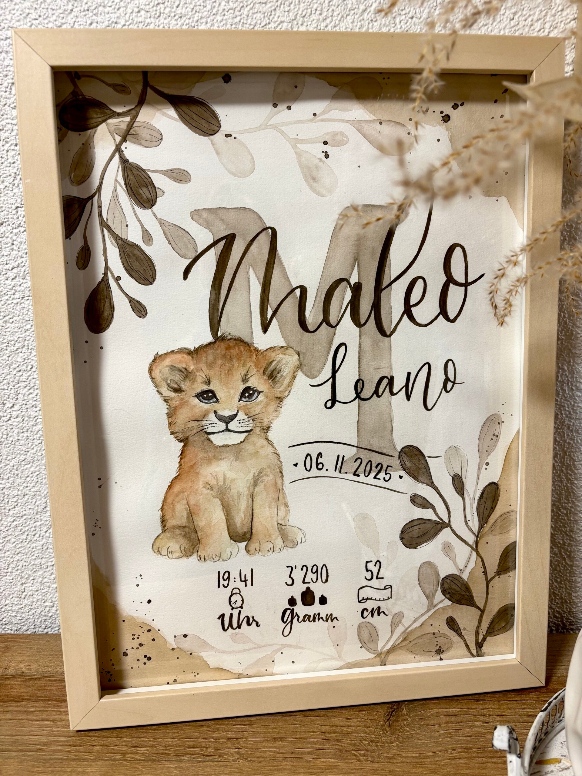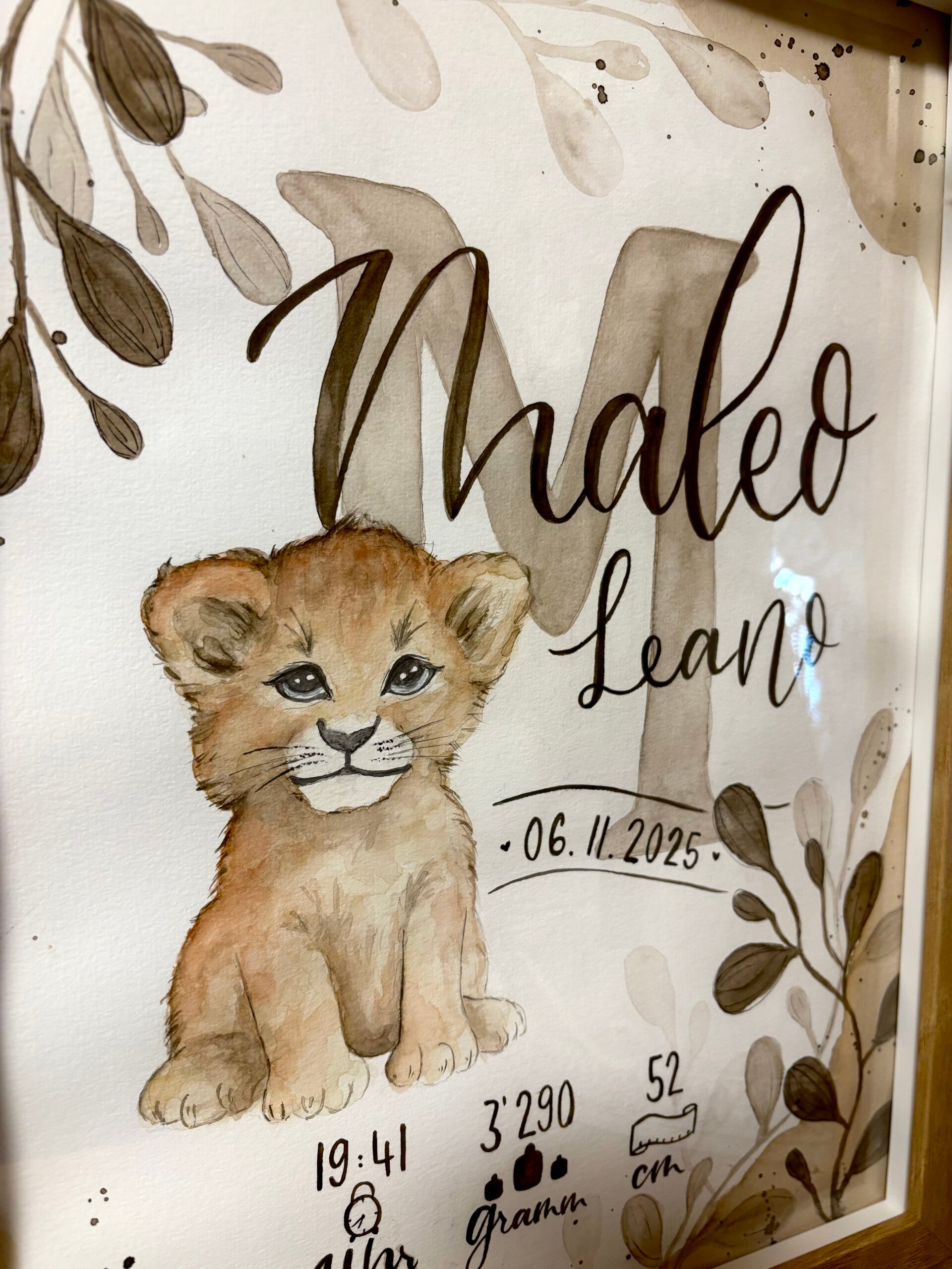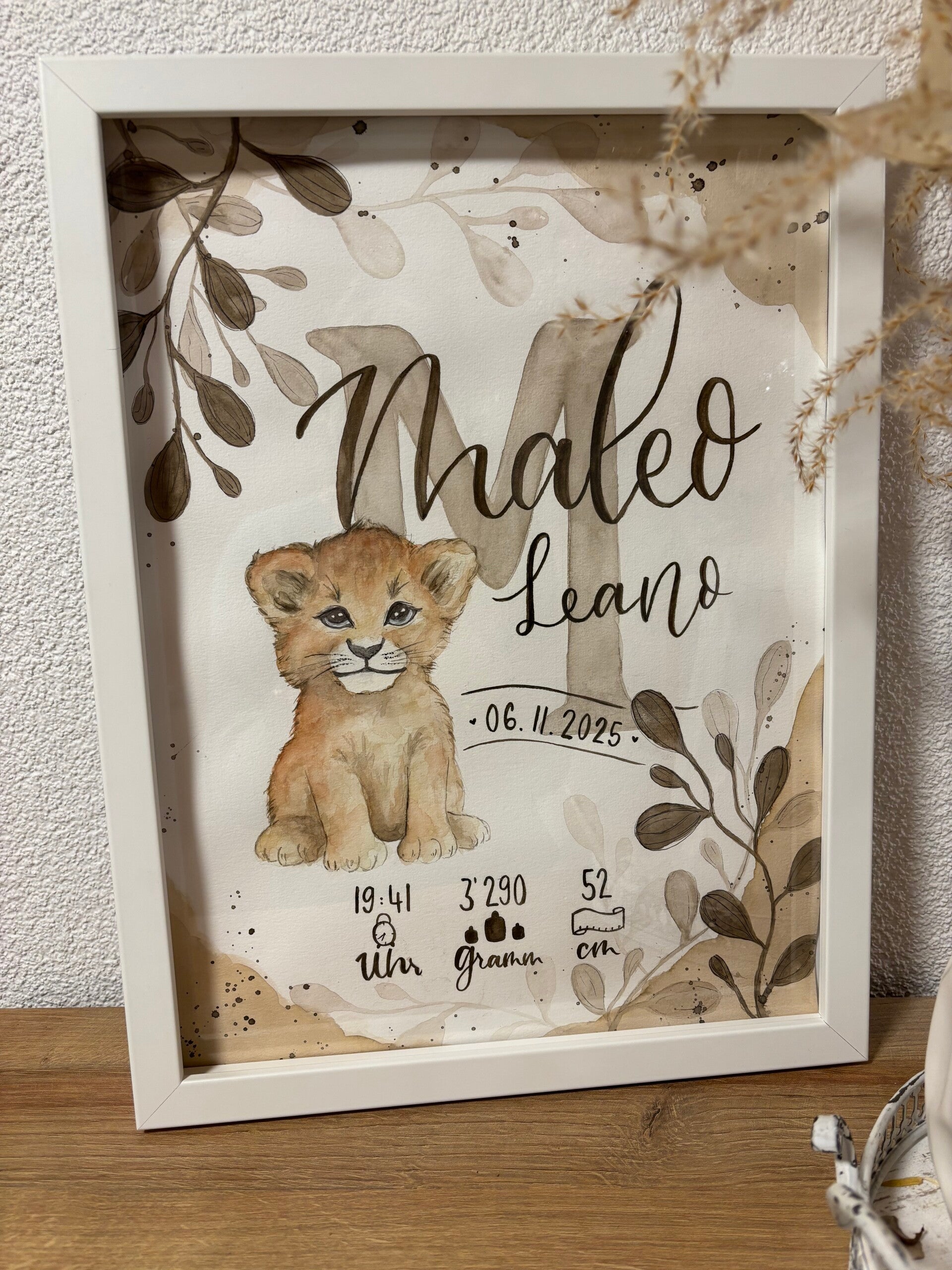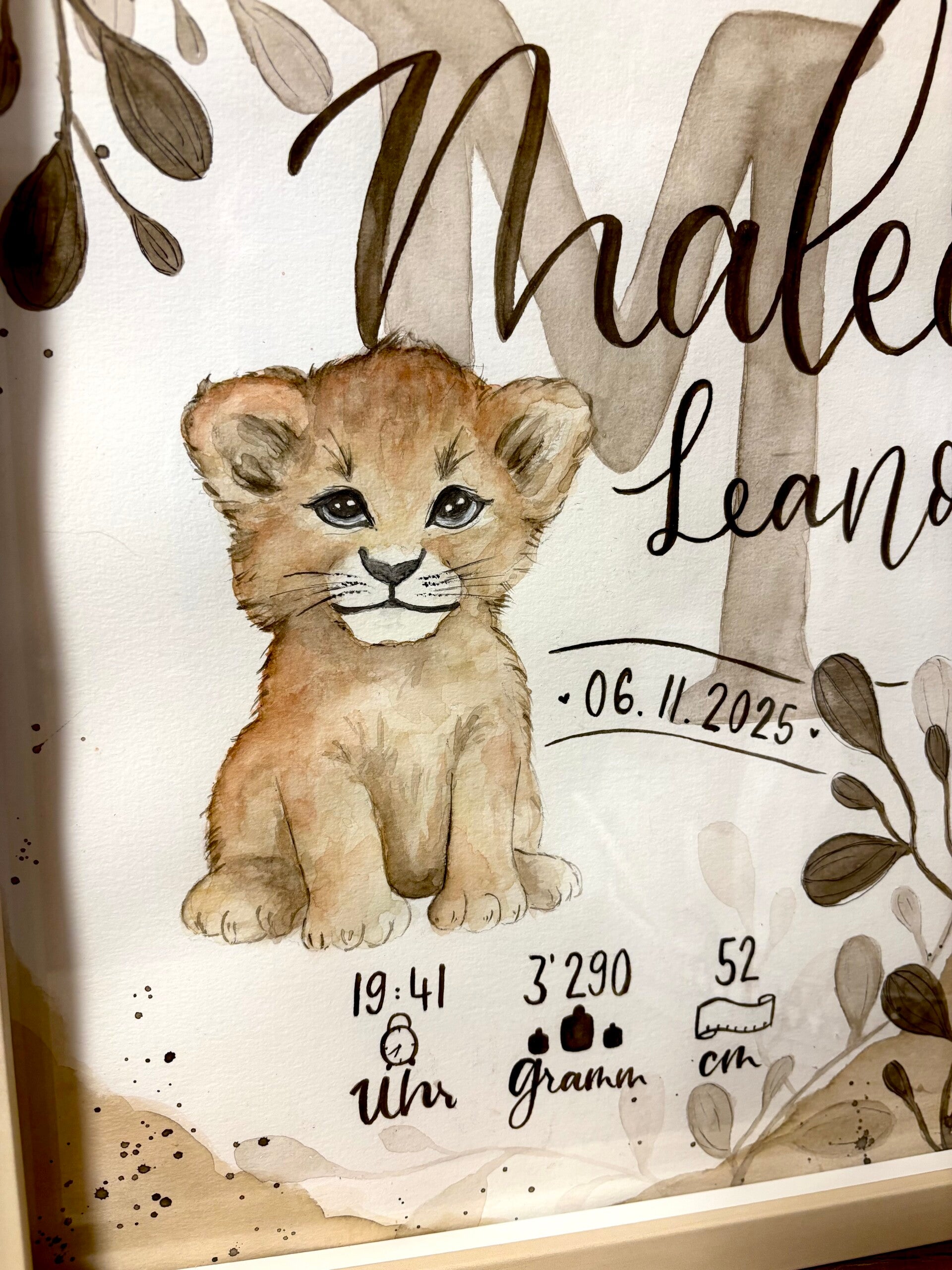 E einzigartegi Gschänksidee zure Geburt, Toufi oder süsch ame Ahlass. Das Biud wird mit viu Liebi u Härzbluet vo Hang houptsächlech mit Wasserfarbe ersteut u auefaus mau mitemne Fineliner Stift Konture nachezeichnet. Somit isch u blibt jedes Biud es Unikat.